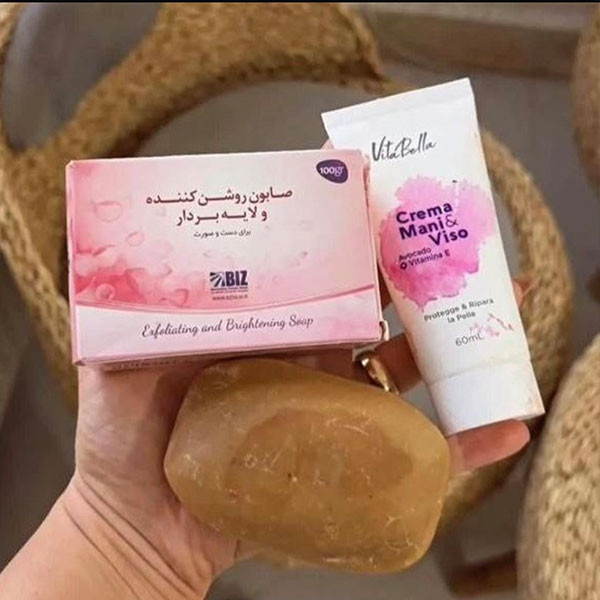 حاوی روغن نارگیل، پودر هسته زرد آلو، ویتامین C و شیرین بیان
